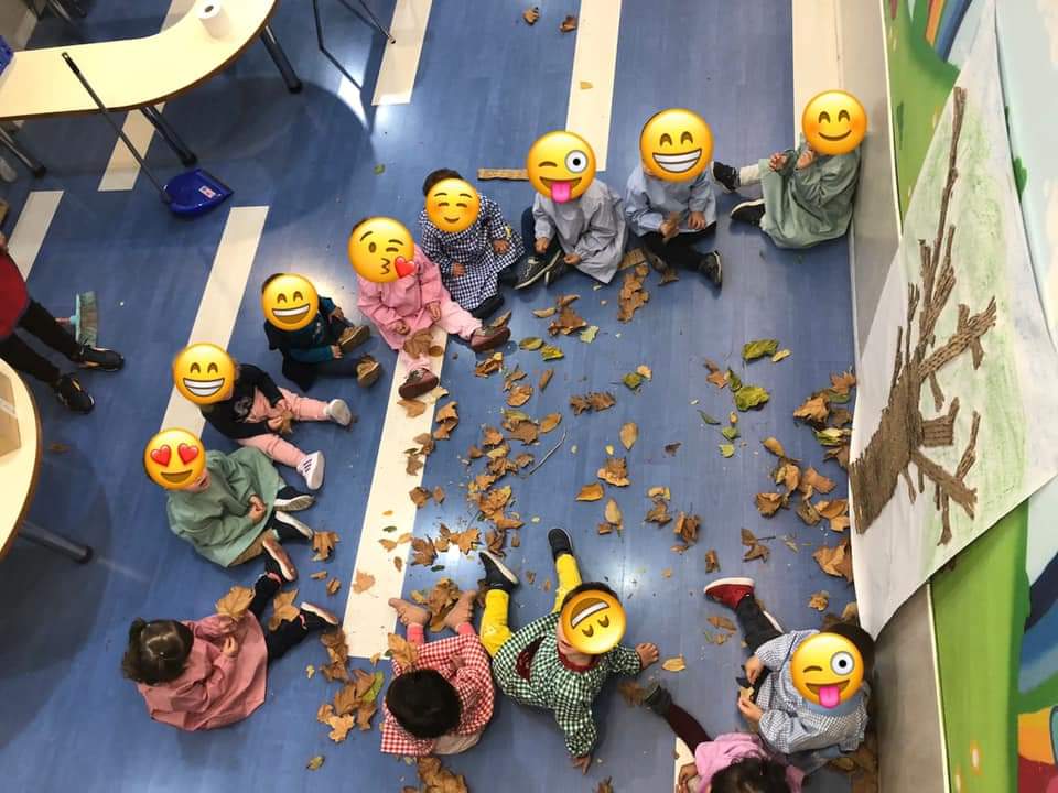 Disfrutamos haciendo un mural, jugando con las hojas y observando la caída de ellas en los árboles.