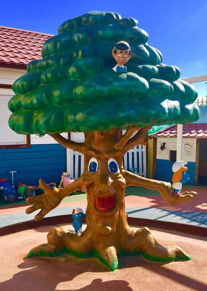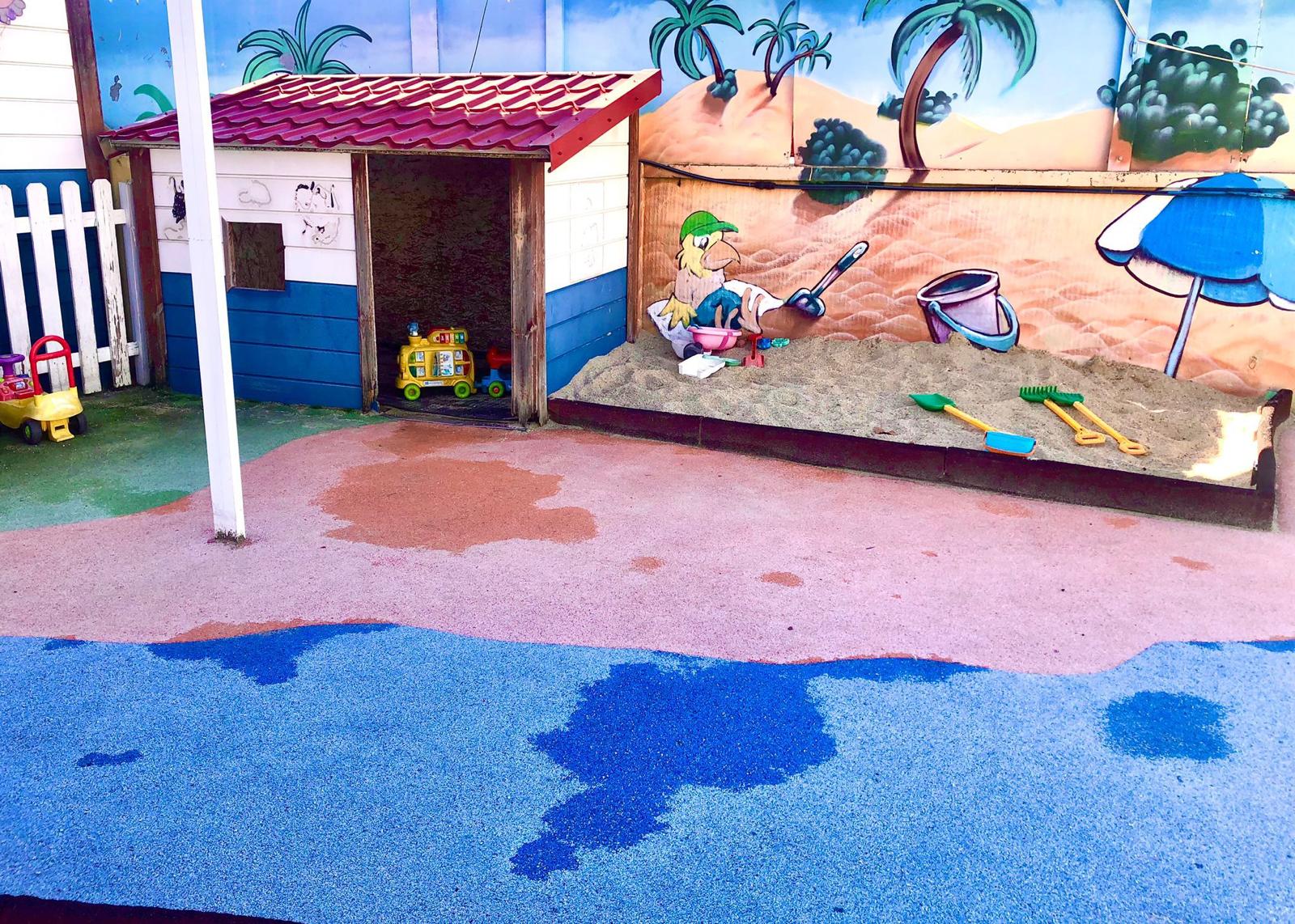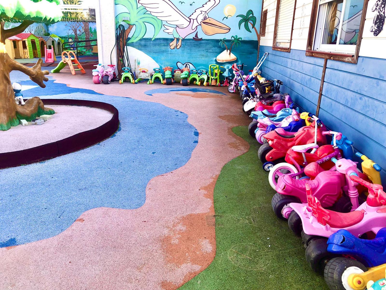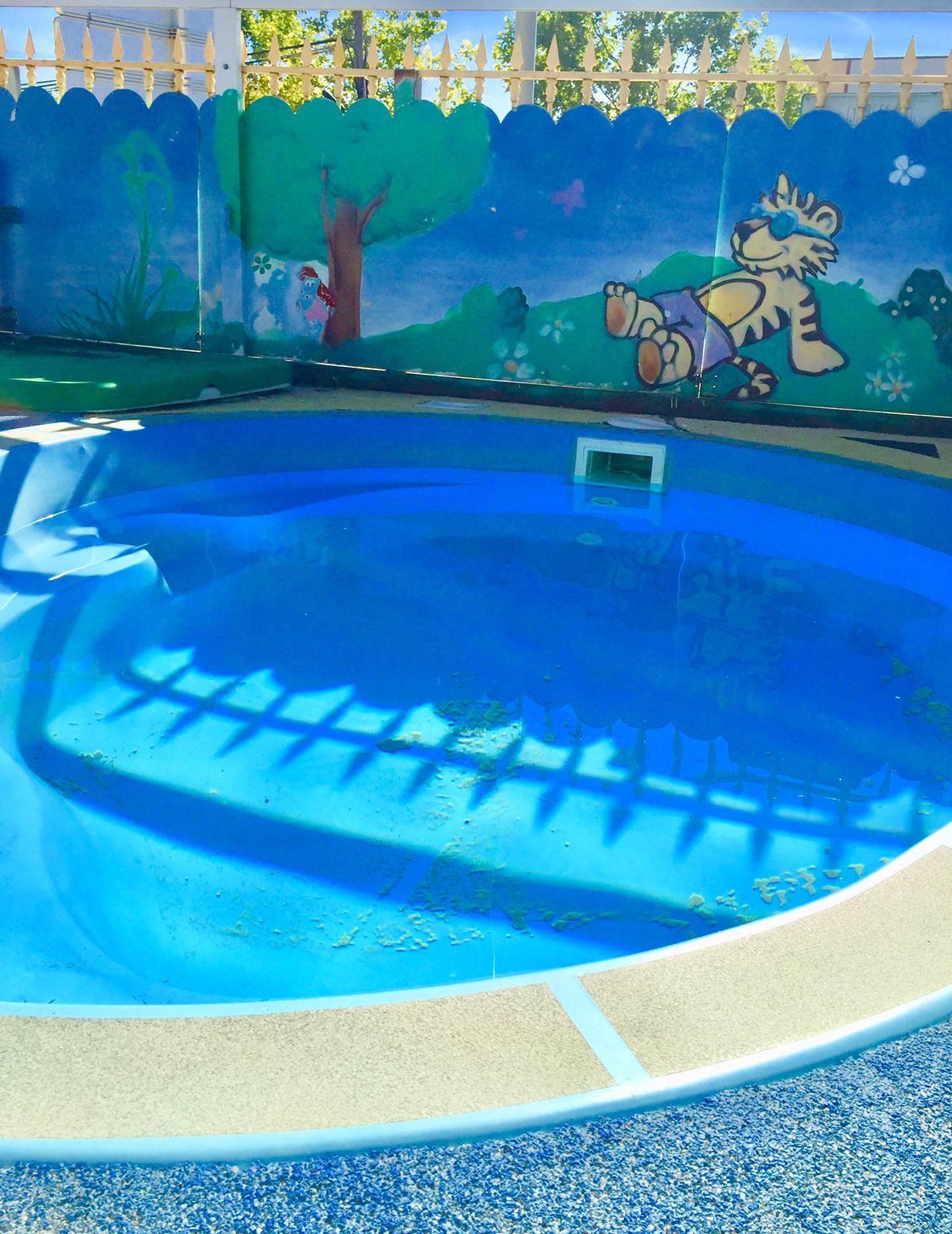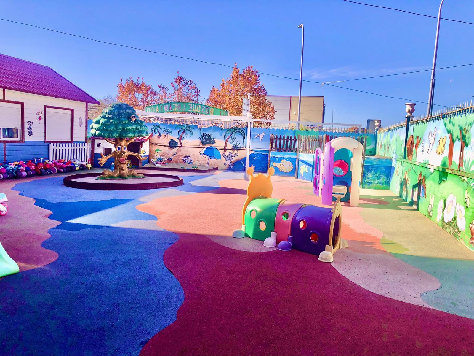 Tanto la decoración de sus paredes como el pavimento tan especial y atrayente de que está dotado, son una autentica delicia para nuestros niños, que parecen encontrarse en un bosque de cuento, donde no faltan preciosas casitas, columpios, toboganes, cama elástica y muchas motos con las que se lo pasan en grande haciendo carreras, mientras que el árbol mágico que se encuentra en el centro, les sonríe encantado. Por si esto fuera poco dispone de una piscina muy adecuada a las edades de los niños, donde en el verano disfrutan de lo lindo dándose buenos chapuzones, perdiendo el miedo al agua, y disfrutando después tomando el sol y correteando al aire libre.
